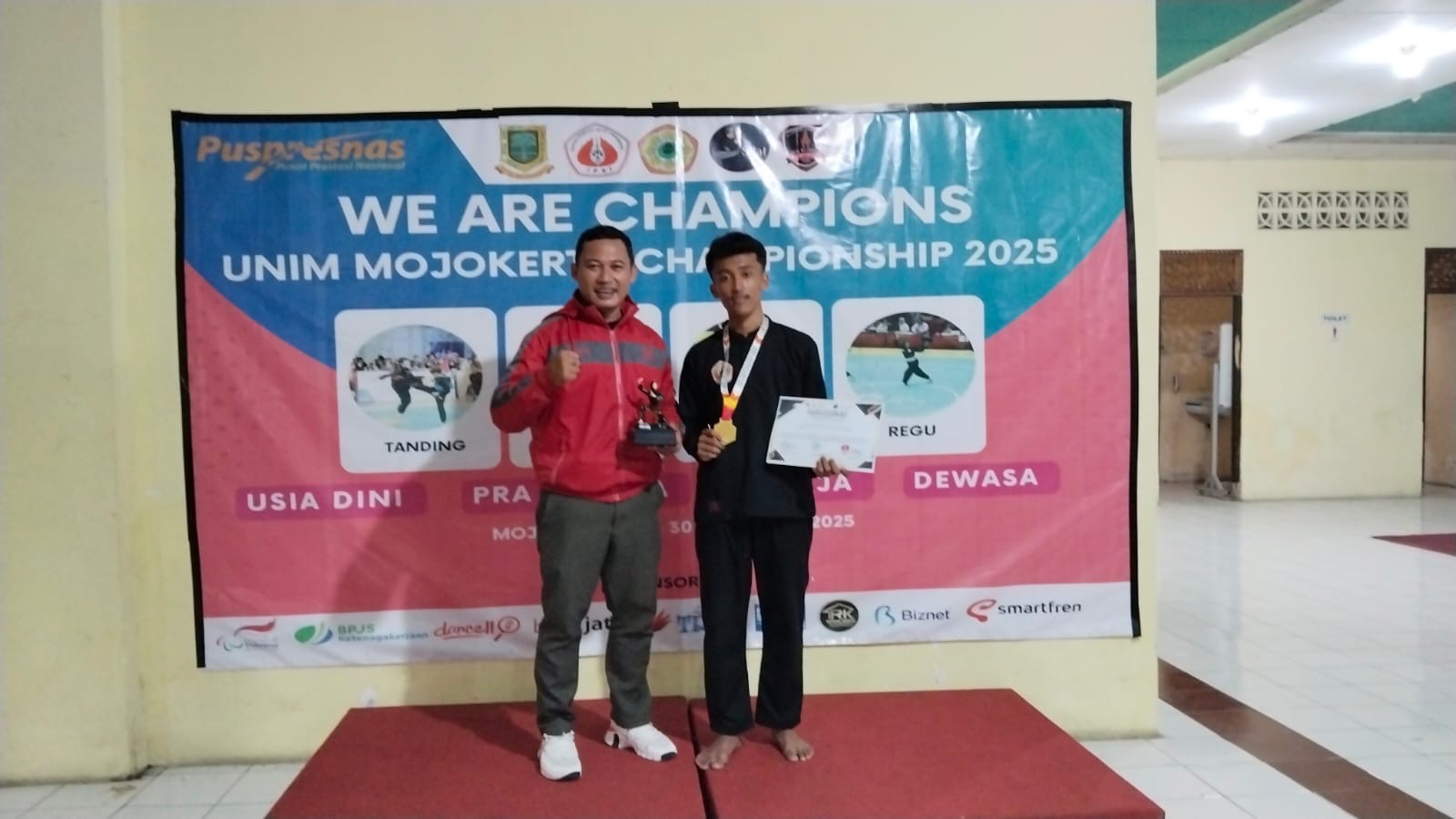 Mojokerto (INewsOne) — Ajang UNIM Championship 2 Mojokerto 2025 yang digelar pada 28–30 November 2025 menjadi momen istimewa bagi Ahmad Bayu Saputra, siswa SMK Thoriqul Ulum Lamongan. Bayu berhasil menyabet Juara 1 Kelas C Remaja sekaligus dinobatkan sebagai Pesilat Terbaik Kelas Remaja Putra pada kejuaraan yang berlangsung di Universitas Islam Majapahit (UNIM) Mojokerto tersebut.